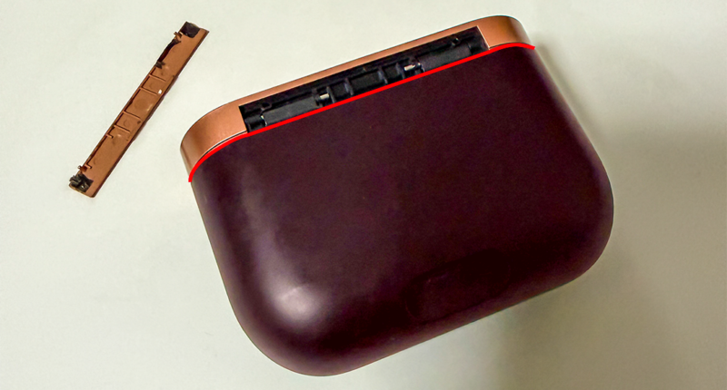 画像で赤くラインをひいた部分の溝にヘラ等を入れてタッチセンサー部分(ここでは蓋とします)を外します。おそらく接着剤は使われてなくツメで止まっているのでツメを外す感じで蓋を外します。